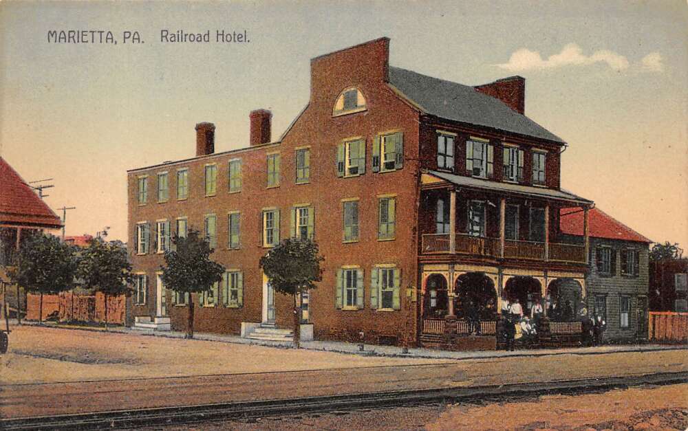 Marietta Pennsylvania Railroad Hotel, Color Lithograph, Vintage Postcard U27050