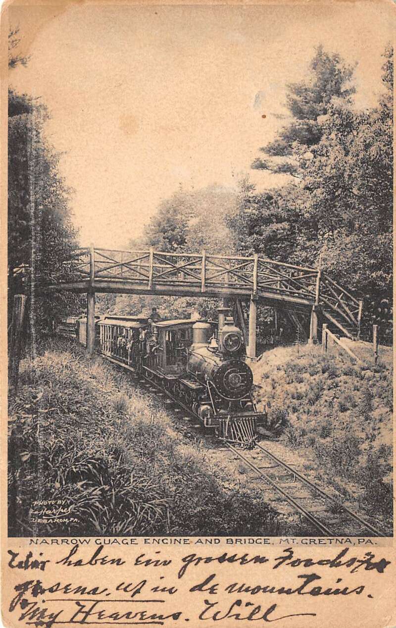 Mt. Gretna Pennsylvania, U27051, Narrow Gauge Engine & Bridge, Undivided Back, PC