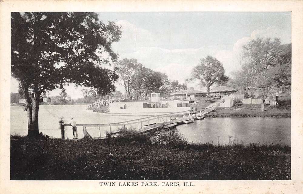 Paris Illinois Twin Lakes Park, B/W Lithograph, Vintage Postcard U27057