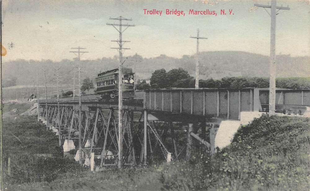 Marcellus New York Trolley Bridge, Hand Colored Vintage Postcard U27058