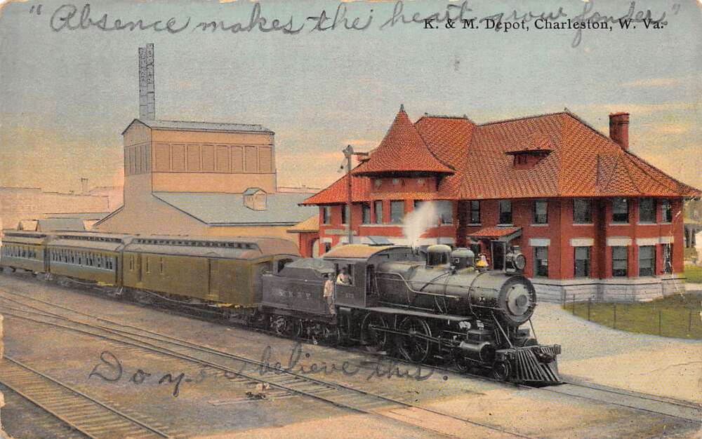 Charleston West Virginia K. & M. Depot, Color Lithograph, Vintage PC U27059