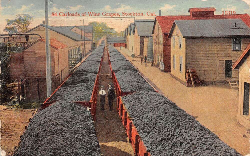 Stockton California 84 Car Loads Of Wine Grapes, Vintage Postcard U27061