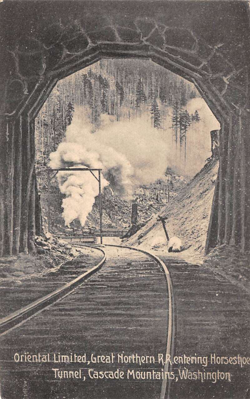 Cascade Mountains Washington, U27062, Oriental Limited, Great Northern R.R., Horseshoe Tunnel, Vintage Postcard