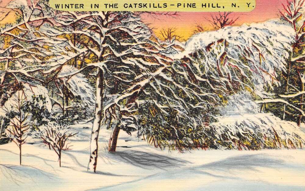 Pine Hill New York Winter In The Catskill, Color Linen, Vintage Postcard U27066