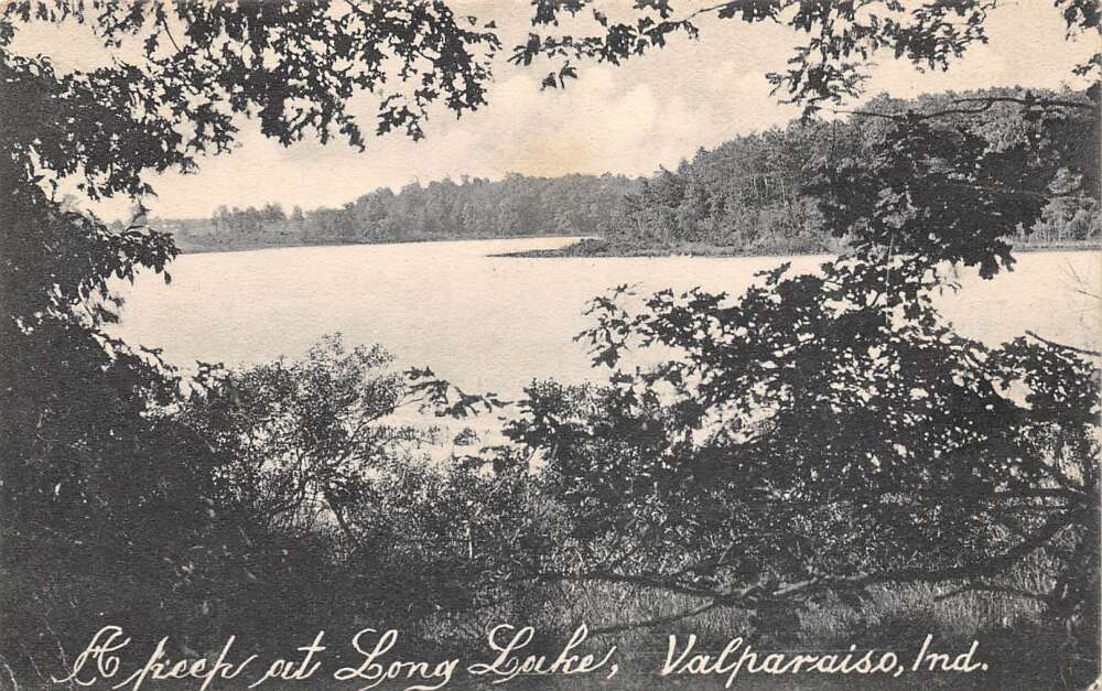 Valparaiso Indiana A Peek At Long Lake, B/W Lithograph, Vintage Postcard U27067