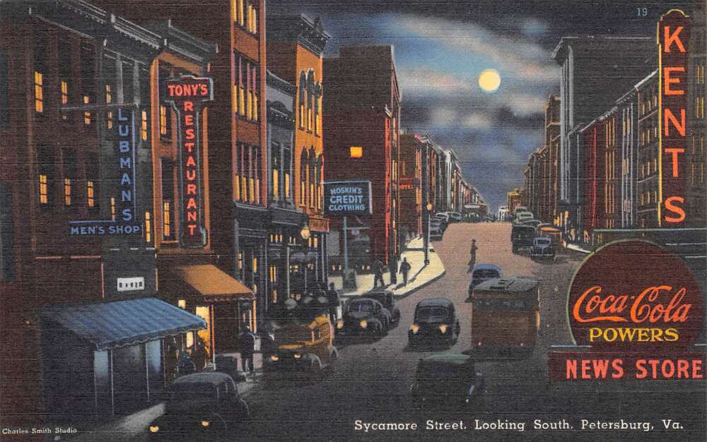 Petersburg Virginia Sycamore St., Looking S., Coke Sign, Linen, PC U27069
