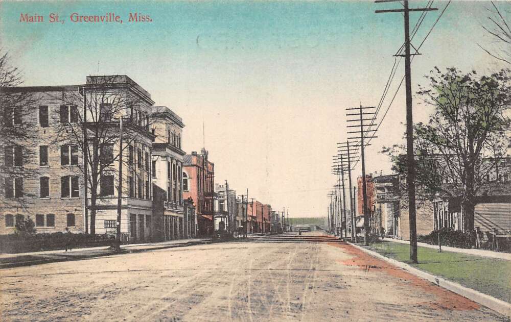 Greenville Mississippi Main Street, Color Lithograph Vintage Postcard U17249