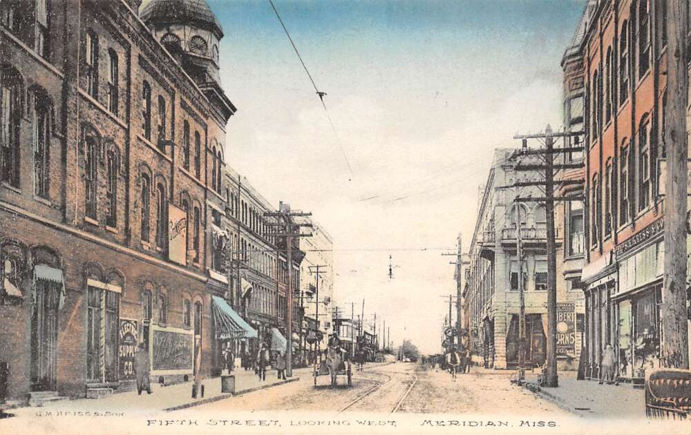 Meridian Mississippi 5th Street, Looking West, Albertype Co., Vintage PC U17252