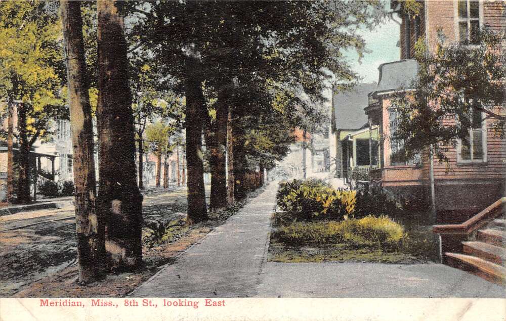 Meridian Mississippi 8th St. Looking East, Color Lithograph Vintage PC U17255