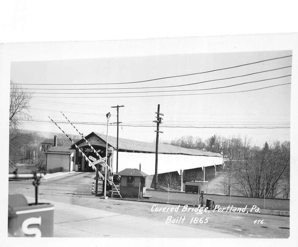 Portland Pennsylvania Covered Bridge and Railroad Crossing Real Photo PC AA80088