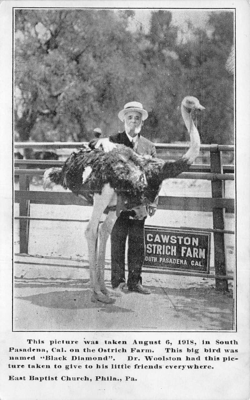 South Pasadena California Cawston Ostrich Farm Dr Woolston Postcard AA81212