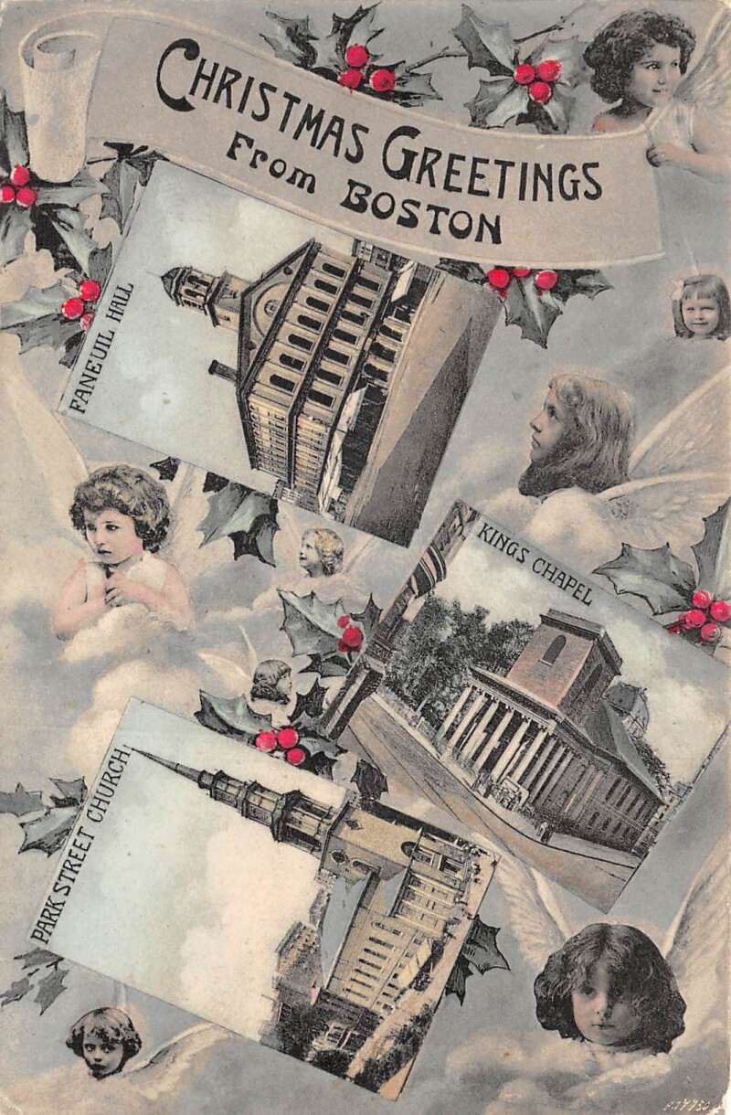 Boston Massachusetts Christmas Greetings Churches Vintage Postcard AA81219