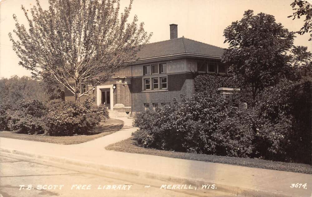 Merrill Wisconsin TB Scott Free Library Real Photo Vintage Postcard AA80048