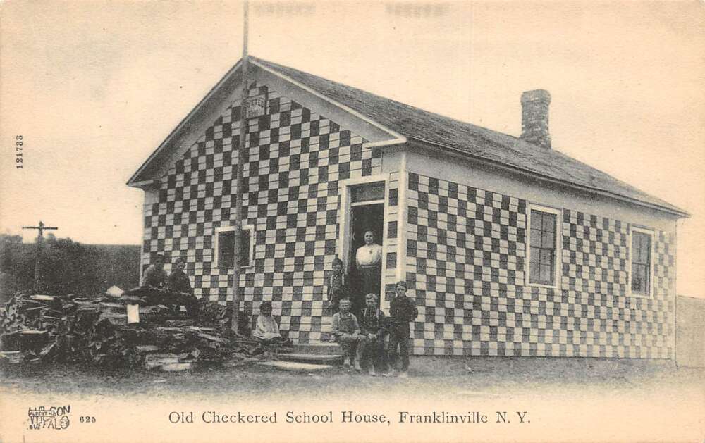 Franklinville New York Old Checkered School House, B/W Lithograph PC U16576