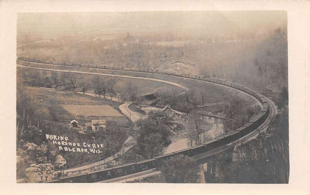 Ableman Wisconsin Train on Horseshoe Curve Real Photo Vintage Postcard AA81266