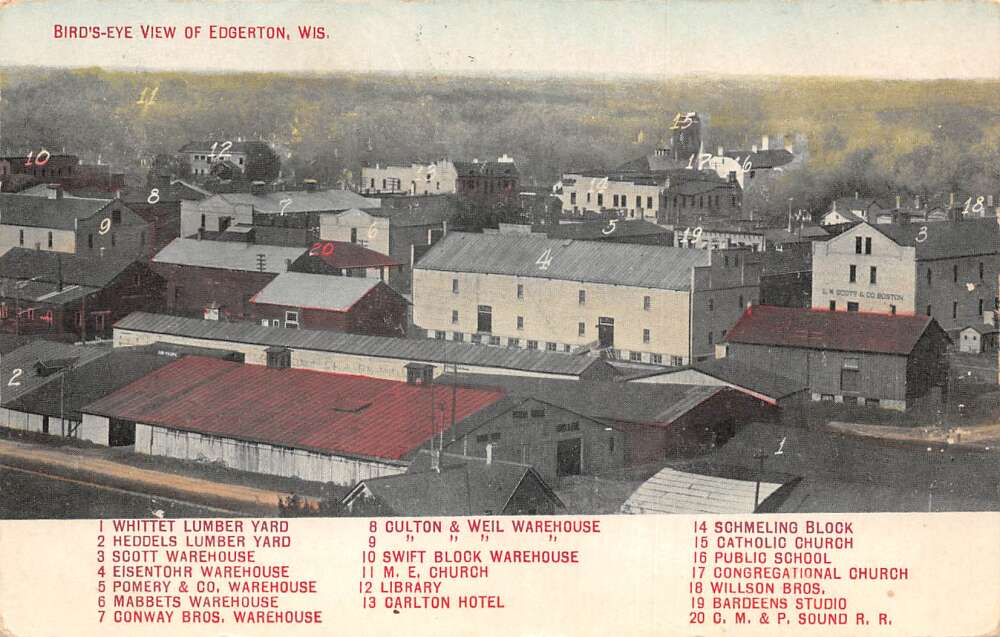 Edgerton Wisconsin Birds Eye View Vintage Postcard AA81267