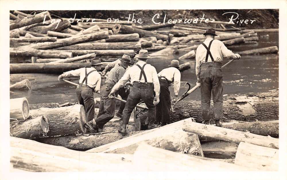 Clearwater River Log Drive Logging Scene Idaho? Real Photo Postcard AA81624