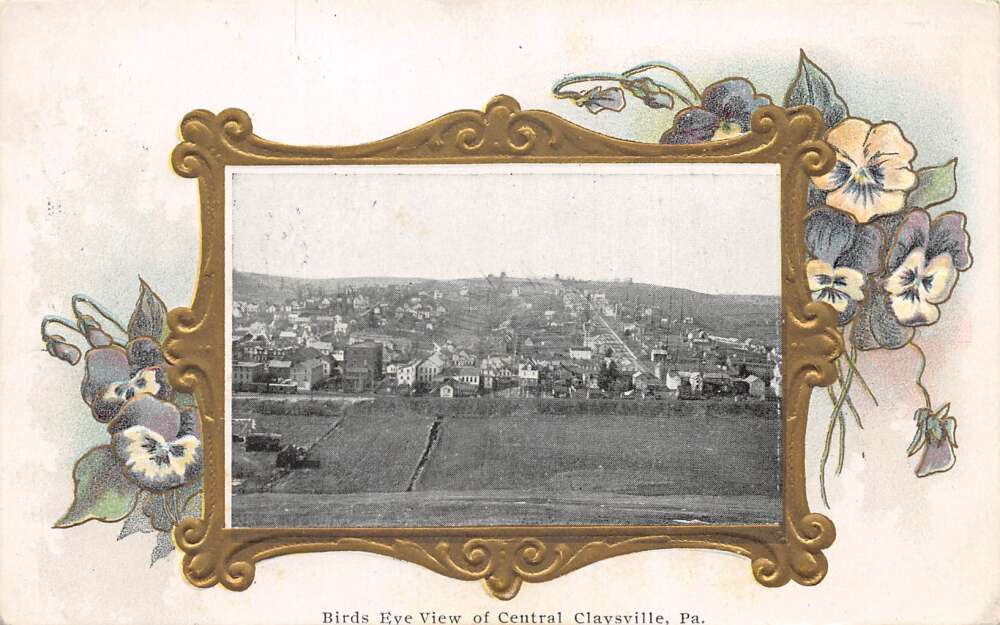 Claysville Pennsylvania Birds Eye View Flowers and Frame Postcard AA81625