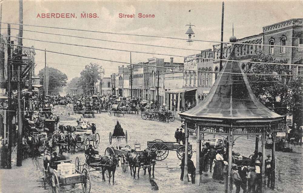 Aberdeen Mississippi Street Scene, B/W Lithograph Vintage Postcard U17516