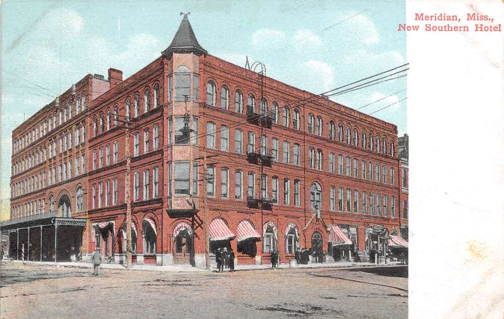 Meridian Mississippi New Southern Hotel, Color Lithograph Vintage PC U17520