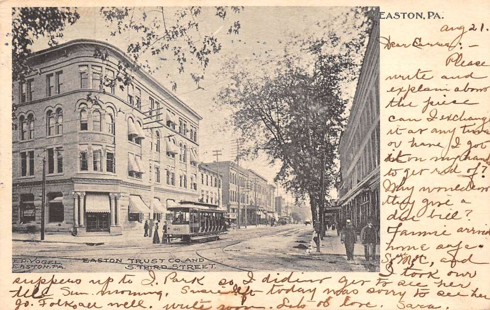 Easton Pennsylvania Easton Trust Co. & S. Third St., Trolley, PC U17221
