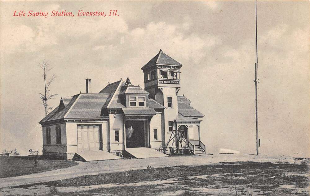 Evanston Illinois Life Saving Station, B/W Lithograph Vintage Postcard U17224
