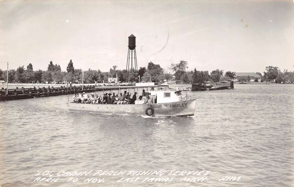 East Tawas Michigan Log Cabin Perch Fishing Service, Real Photo Postcard U17237