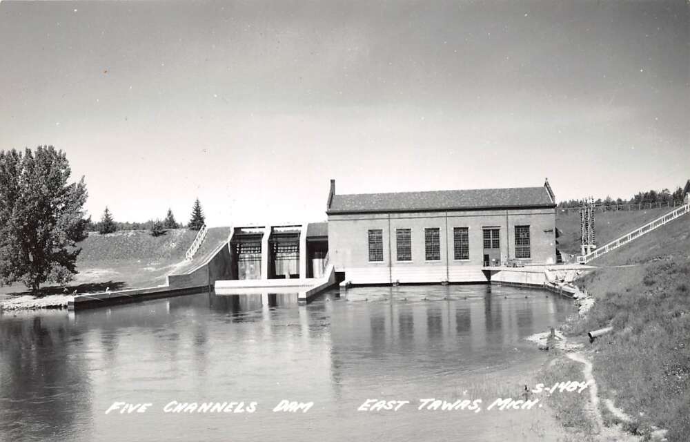 East Tawas Michigan Five Channels Dam, Real Photo Vintage Postcard U17238