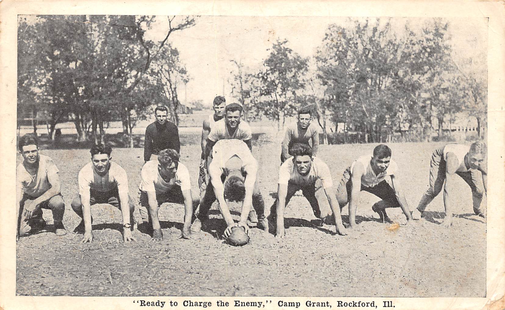 Rockford Illinois Camp Grant Football Scene, B/W Photo Print Vintage PC U17000