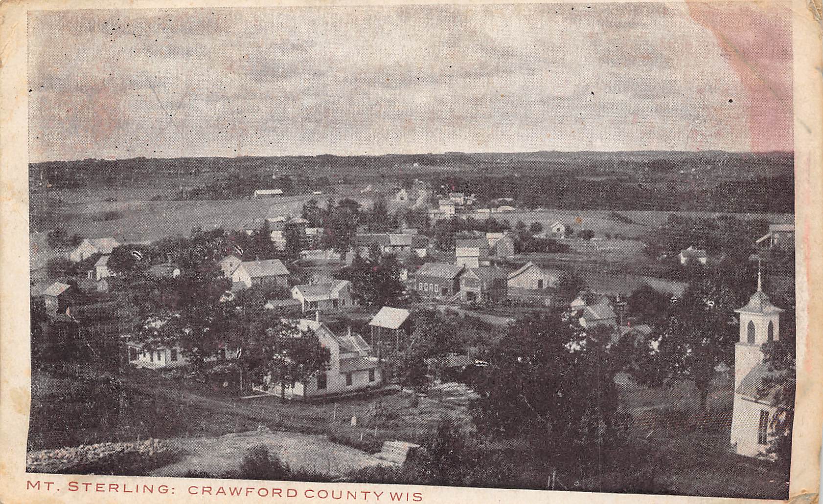 Mt. Sterling Wisconsin Bird’s Eye View Of Town, B/W Lithograph Vintage PC U17001