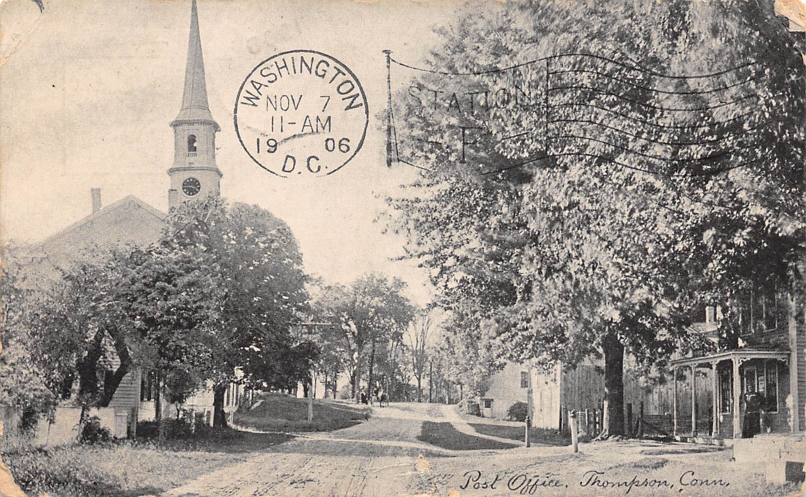 Thompson Connecticut Post Office, Undivided Back, Vintage Postcard U17004