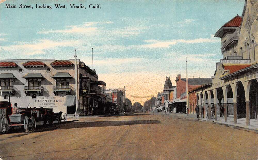 Visalia California Main Street Looking West Vintage Postcard AA73675