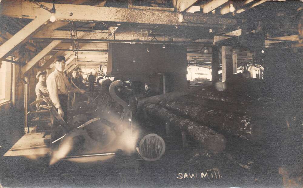 Crystal Falls Michigan Saw Mill Interior Cutting Logs Real Photo PC AA108501