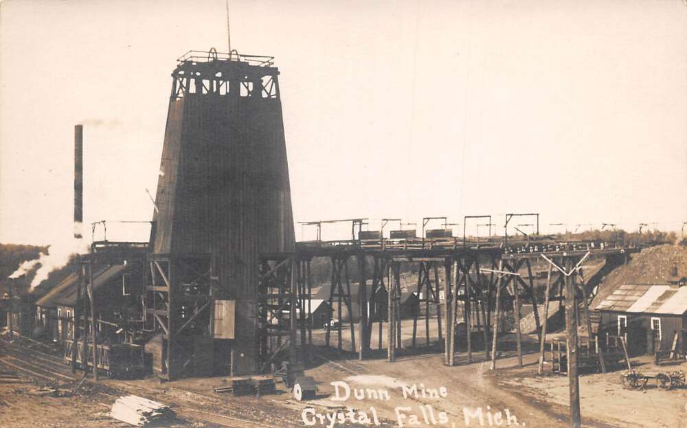 Crystal Falls Michigan Dunn Mine Real Photo Vintage Postcard AA108504