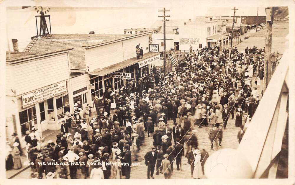 Newport Oregon Boardwalk Crowd Real Photo Vintage Postcard AA108507
