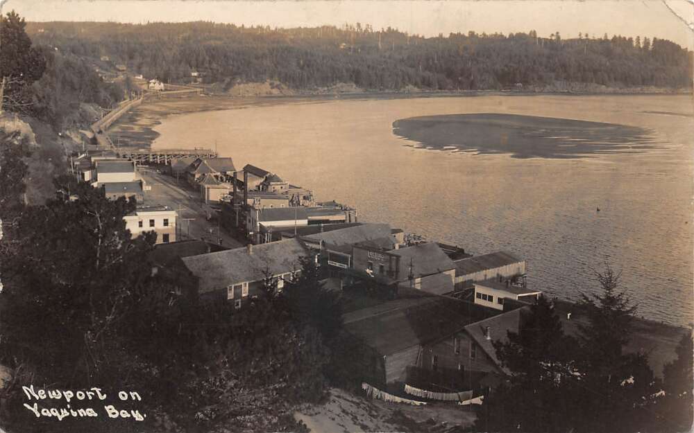 Newport Oregon Birds Eye View Yaquina Bay Real Photo Postcard AA108508