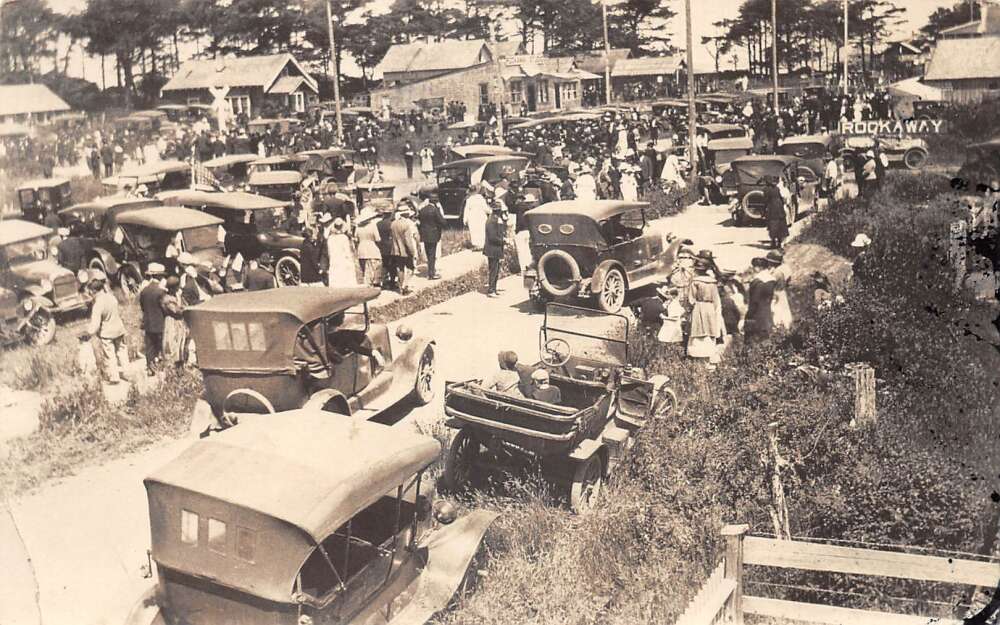 Rockaway Oregon Crowd and Cars Parked Real Photo Vintage Postcard AA108510