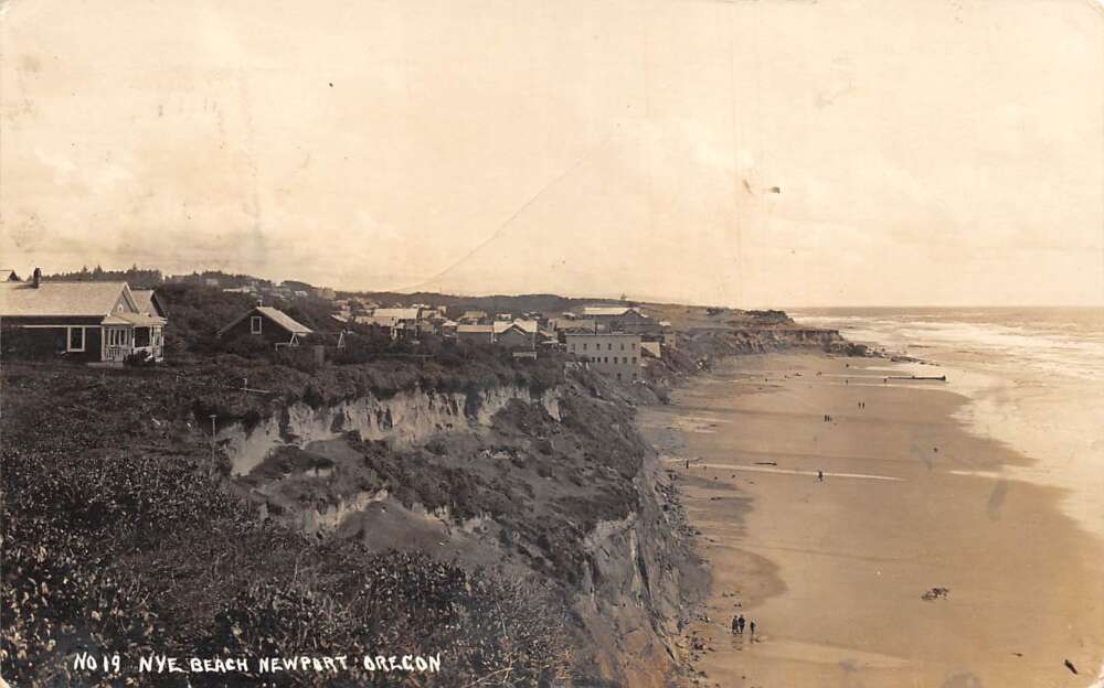 Newport Oregon Nye Beach Birds Eye View Real Photo Postcard AA108511