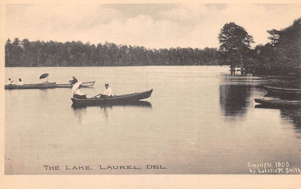 Laurel Delaware The Lake Row Boats Vintage Postcard AA73215