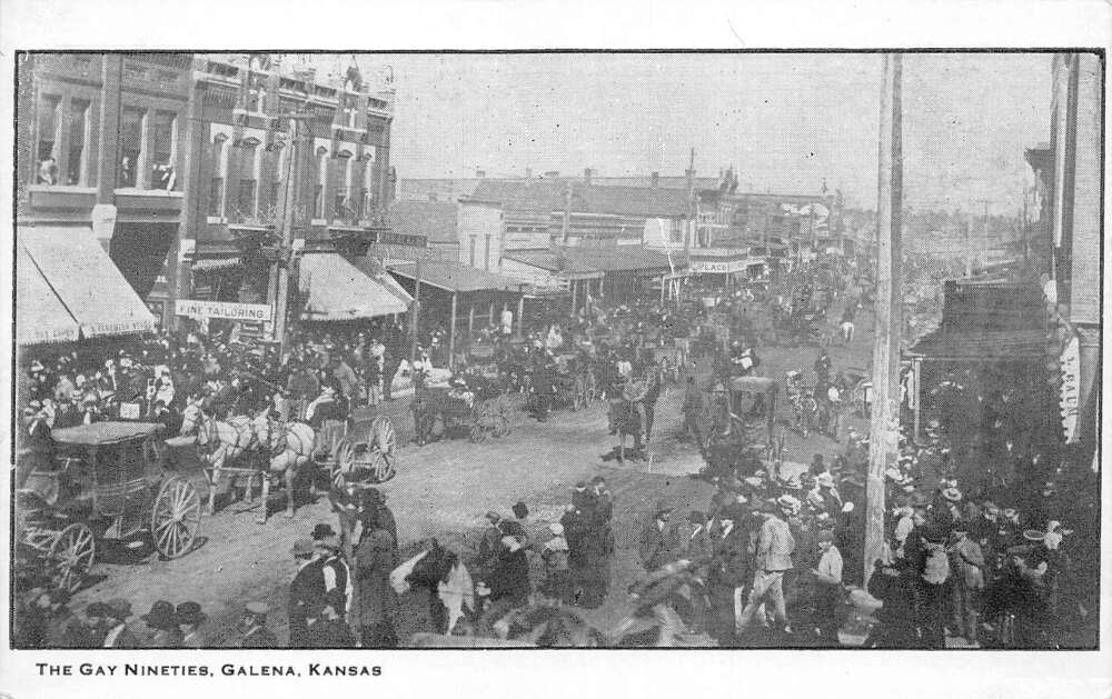 Galena Kansas The Gay Nineties Busy Street Scene Vintage Postcard AA73220