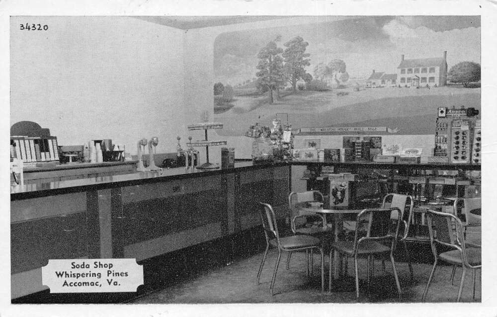 Accomac Virginia Whispering Pines Soda Shop Interior Vintage Postcard AA73227