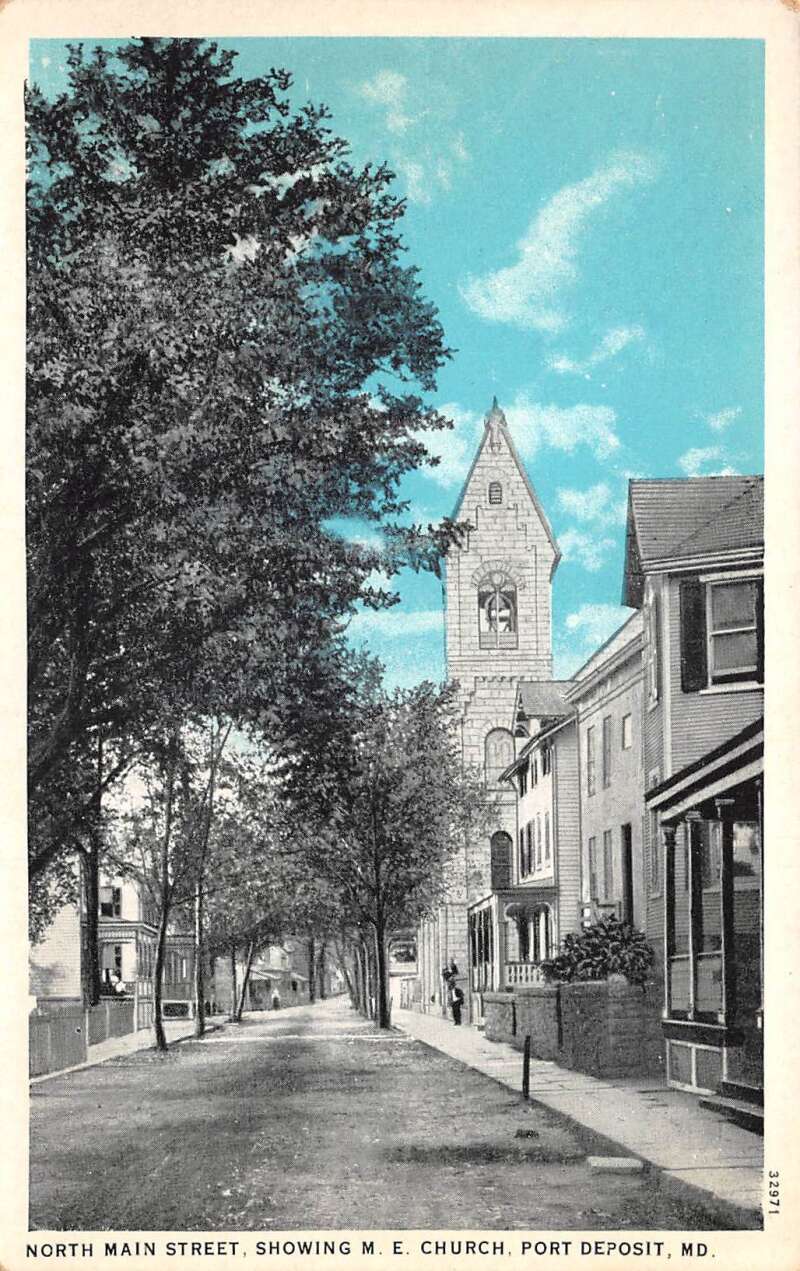 Port Deposit Maryland North Main Street ME Church Vintage Postcard AA73229
