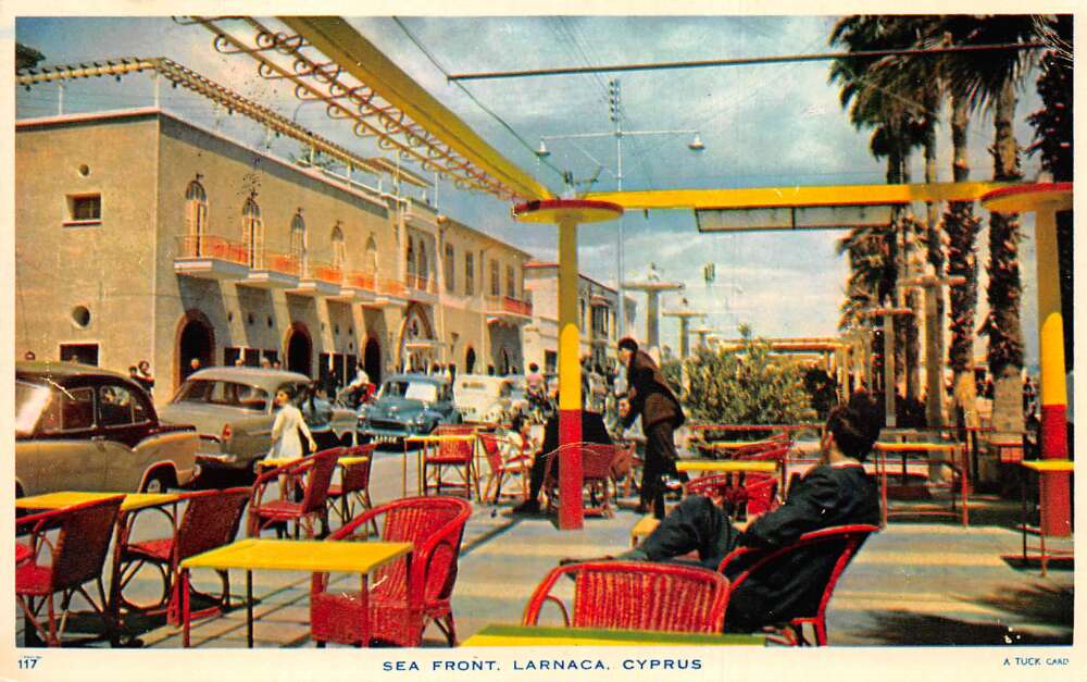 Larnaca Cyprus Sea Front Cafe Tuck Vintage Postcard AA73233