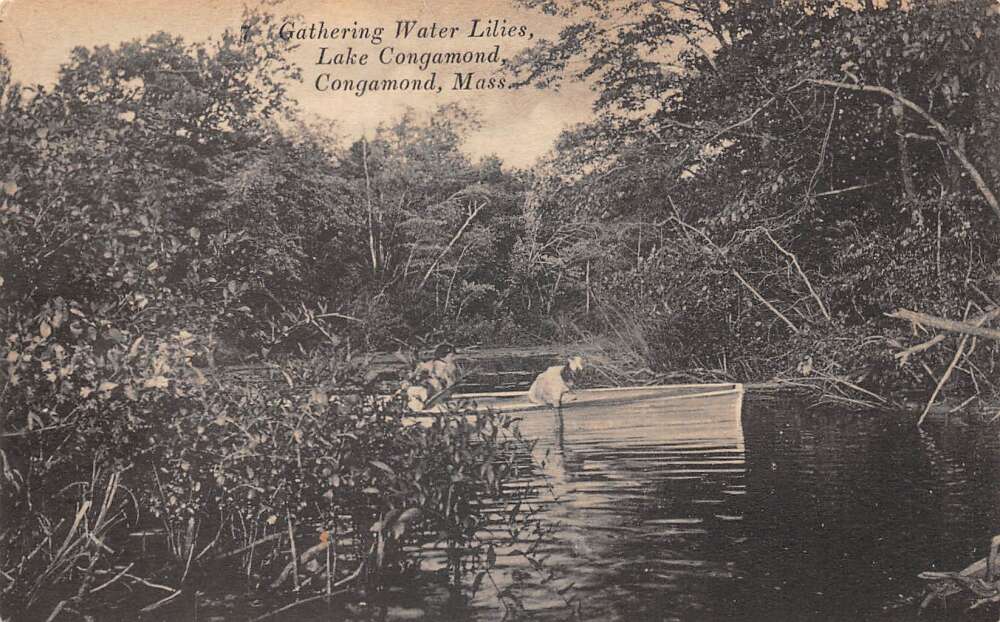 Congamond Massachusetts Lake Congamond Gathering Water Lilies Postcard AA73277