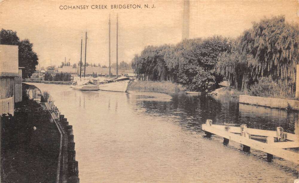 Bridgeton New Jersey Cohansey Creek Boats at Dock Vintage Postcard AA73279