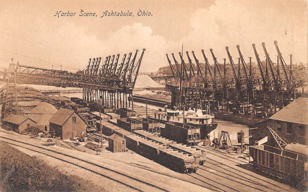 Ashtabula Ohio Harbor Scene Loading Docks Vintage Postcard AA73281