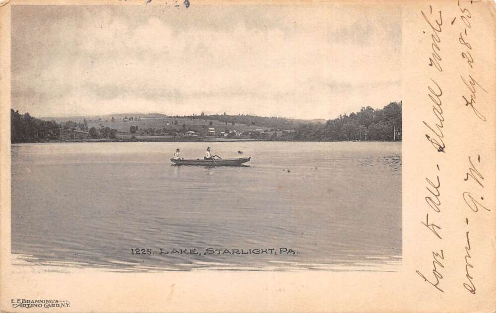 Starlight Pennsylvania Lake Canoeing Scene Vintage Postcard AA73292