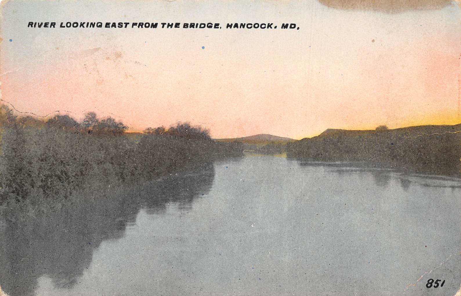 Hancock Maryland River Looking East From Bridge, Color Lithograph PC U12132