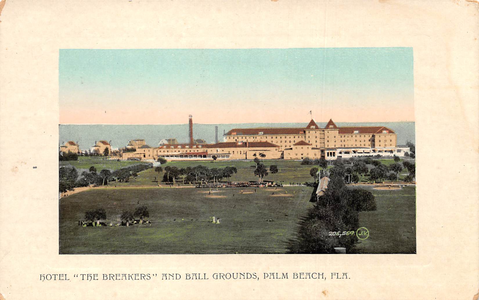 Palm Beach Florida Breakers Hotel & Ball Grounds, Souvenir Post Card, U12135
