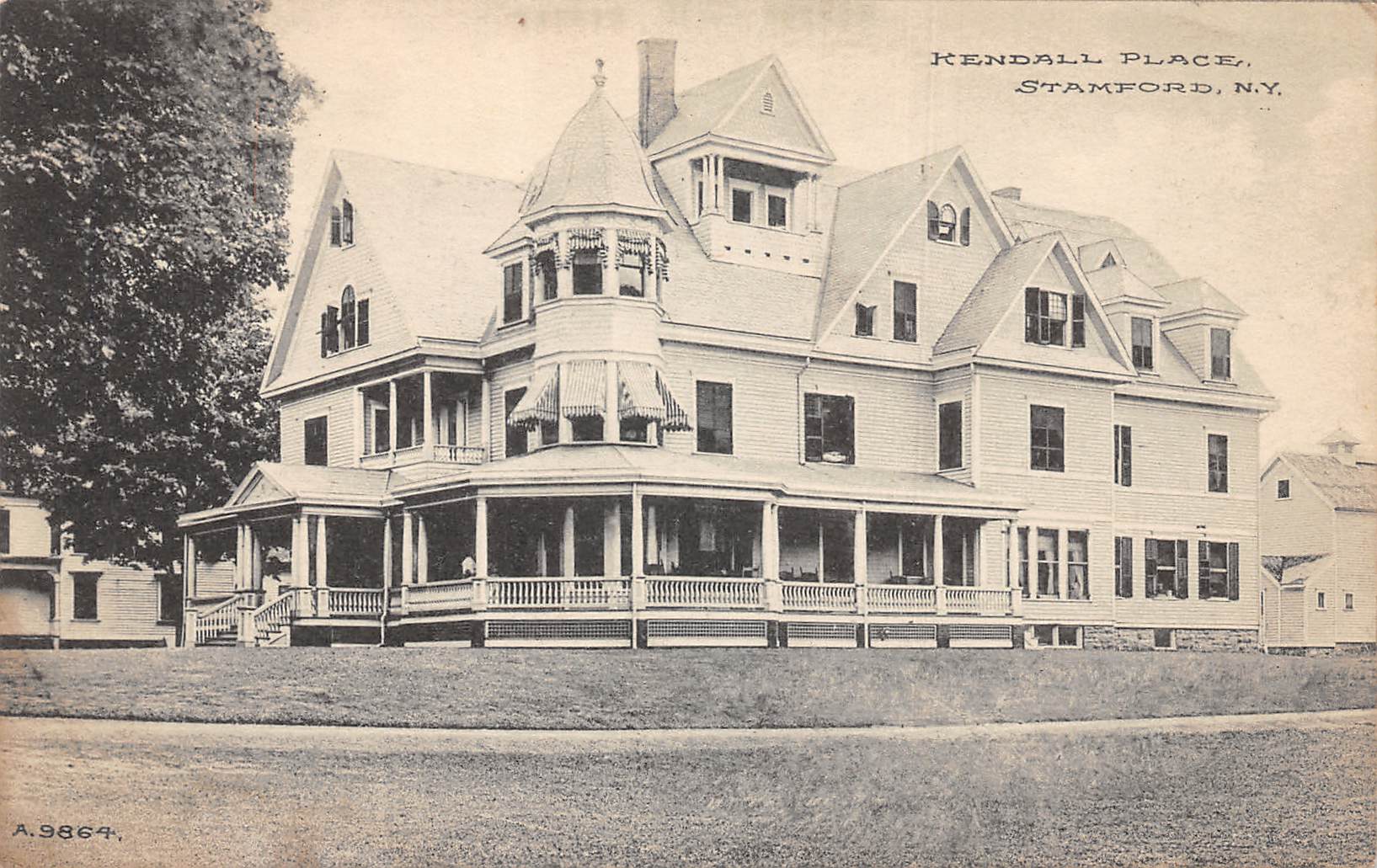 Stamford New York Kendall Place, B/W Lithograph Vintage Postcard U12148